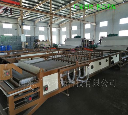 砂浆污水处理设备现货销售厂家——山东广晟环保科技公司。主要设备选用真空过滤机,是在引进国外同类产品技术基础上,开发的一种过滤固液分离设备。该设备采用了固定真空盒,胶带在真空盒上滑动,真空盒与胶带间构成运动密封的结构型式,以真空负压为推动力实现固液分离的设备。