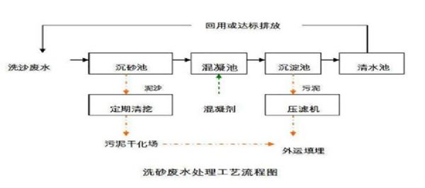 洗砂废水处理方案,针对洗沙污水有着多年的治理经验和以往工程案例,在处理工艺上采用“沉淀+浓缩分离+污泥干化”处理该废水,工艺先进,处理效果好,处理后的排放水可达到循环利用标准。