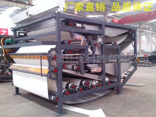尾矿污泥脱水处理设备-污泥脱水压滤过程可分为预处理、重力脱水、楔形区预压脱水及压榨脱水四个重要阶段运用全新型深度污泥脱水压滤机。